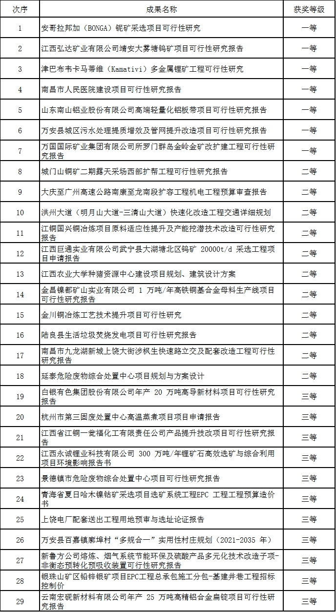 工程咨詢成果評(píng)價(jià)獲獎(jiǎng)項(xiàng)目表