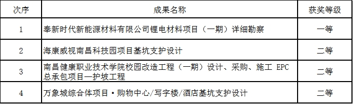 工程勘察成果評(píng)價(jià)獲獎(jiǎng)項(xiàng)目表