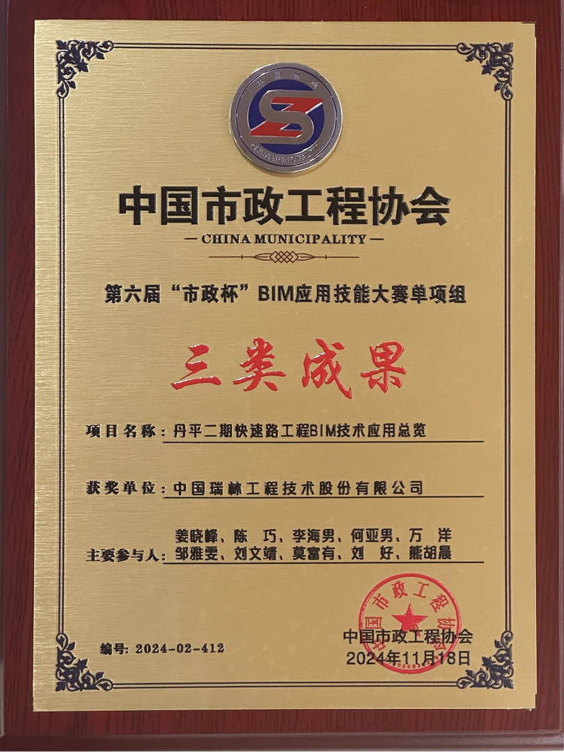 近日,在由中國市政工程協(xié)會主辦的第六屆“市政杯”BIM 應用技能大賽成果發(fā)布會上,中國瑞林申報的“丹平二期快速路工程BIM技術總覽”項目,經專家初選、評審、答辯等環(huán)節(jié),最終從全國686項參賽作品脫穎而出,取得三類成果的佳績。